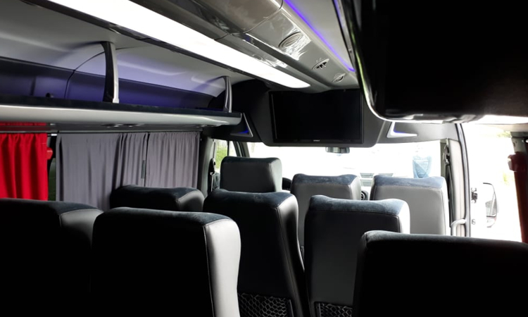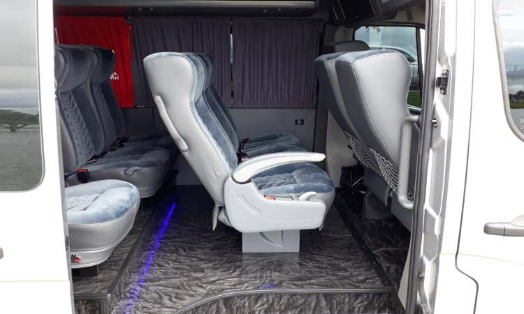 Dispomos de Vans Executivas com Ar Condicionado, Bancos Reclináveis, Cortinas, Tv, Dvd, WIFI e tomadas 110/220 para carregadores de celular e outros equipamentos.
